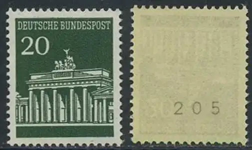 BUND 1966 Michel-Nummer 0507 postfrisch EINZELMARKE m/ rücks.Rollennummer 205