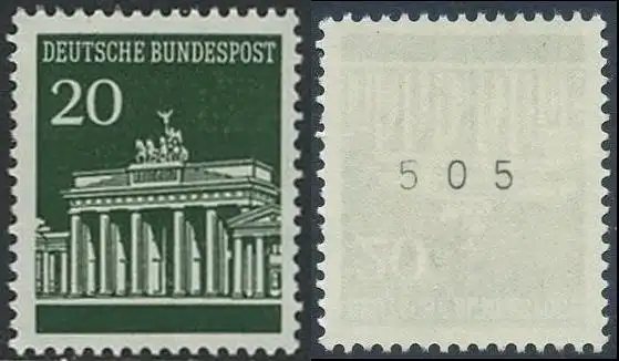 BUND 1966 Michel-Nummer 0507 postfrisch EINZELMARKE m/ rücks.Rollennummer 505