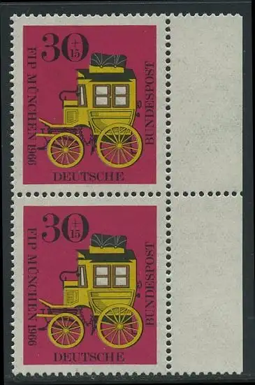 BUND 1966 Michel-Nummer 0516 postfrisch vert.PAAR RAND rechts