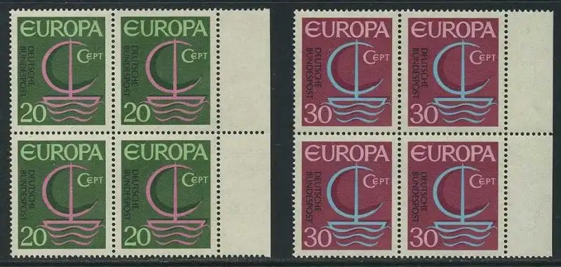 BUND 1966 Michel-Nummer 0519-0520 postfrisch SATZ(2) BLÖCKE RÄNDER rechts