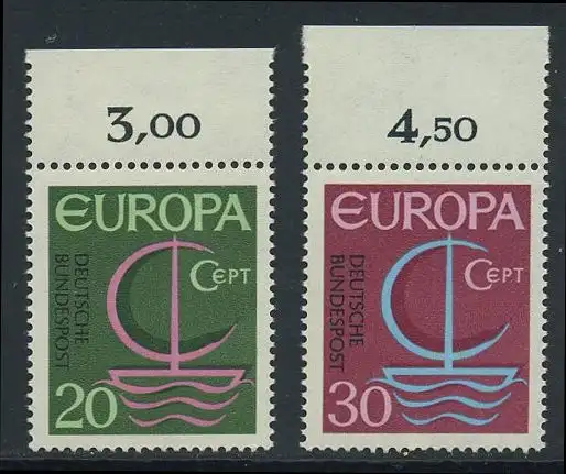 BUND 1966 Michel-Nummer 0519-0520 postfrisch SATZ(2) EINZELMARKEN RÄNDER oben (g)