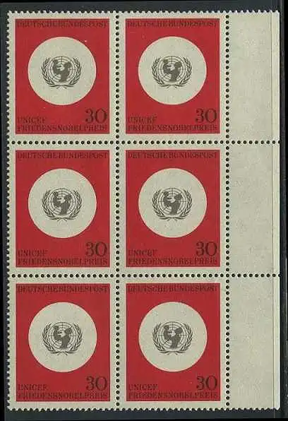 BUND 1966 Michel-Nummer 0527 postfrisch vert.BLOCK(6) RÄNDER rechts