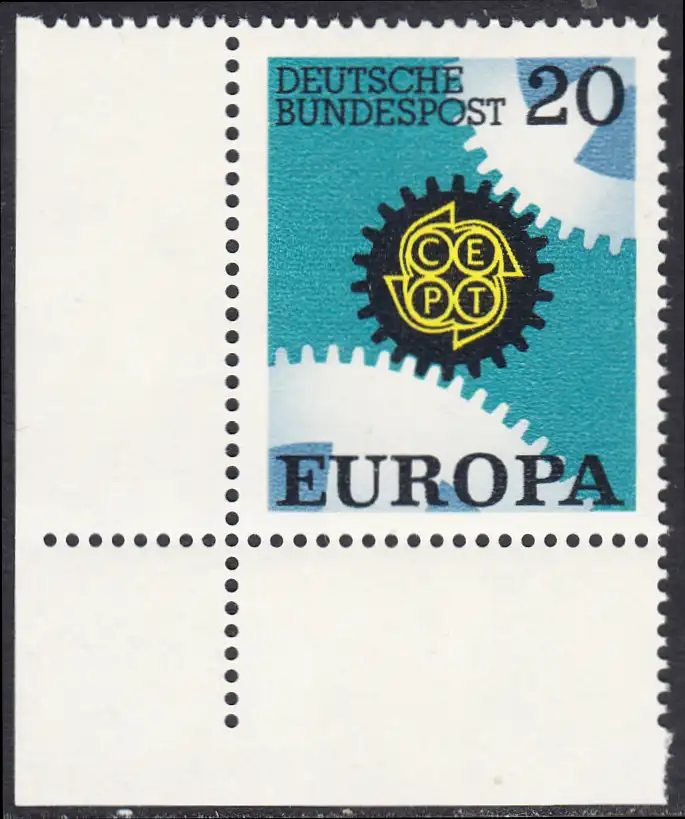 BUND 1967 Michel-Nummer 0533 postfrisch EINZELMARKE ECKRAND unten links
