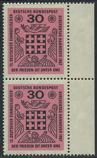 BUND 1967 Michel-Nummer 0536 postfrisch vert.PAAR RAND rechts