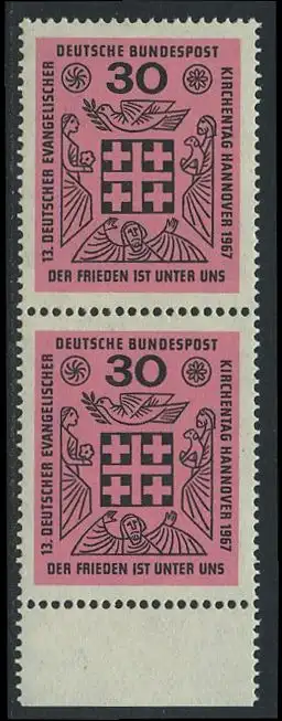 BUND 1967 Michel-Nummer 0536 postfrisch vert.PAAR RAND unten