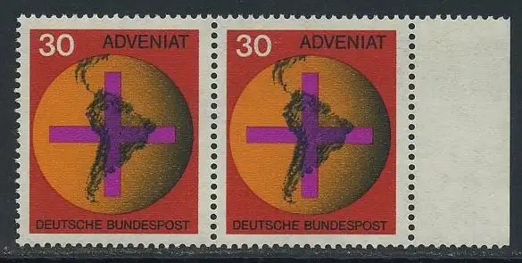 BUND 1967 Michel-Nummer 0545 postfrisch horiz.PAAR RAND rechts