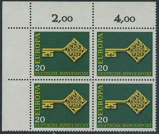 BUND 1968 Michel-Nummer 0559 postfrisch BLOCK ECKRAND oben links