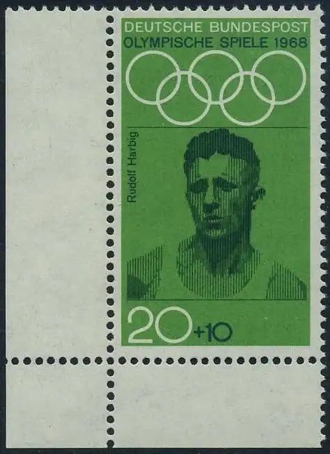 BUND 1968 Michel-Nummer 0562 postfrisch EINZELMARKE ECKRAND unten links