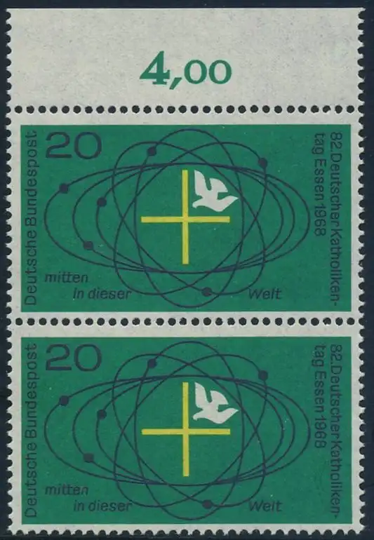 BUND 1968 Michel-Nummer 0568 postfrisch vert.PAAR RAND oben