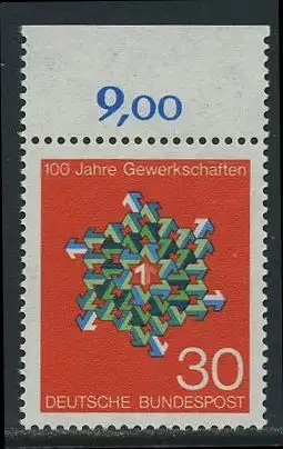 BUND 1968 Michel-Nummer 0570 postfrisch EINZELMARKE RAND oben (b)