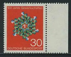 BUND 1968 Michel-Nummer 0570 postfrisch EINZELMARKE RAND rechts