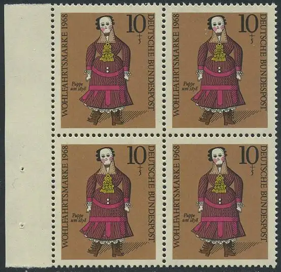 BUND 1968 Michel-Nummer 0571 postfrisch BLOCK RÄNDER links