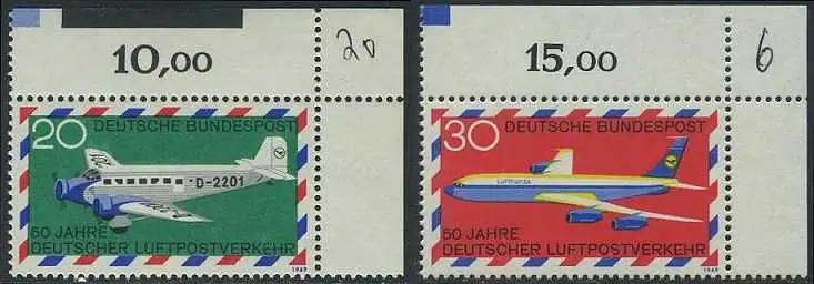 BUND 1969 Michel-Nummer 0576-0577 postfrisch SATZ(2) EINZELMARKEN ECKRÄNDER oben rechts