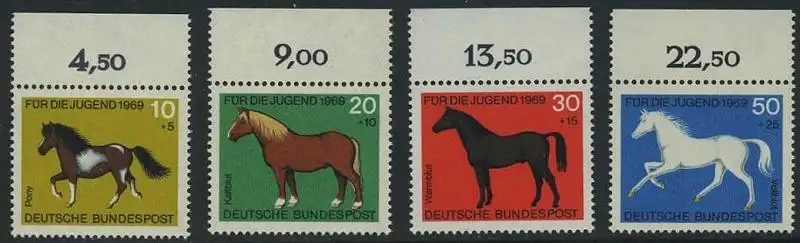 BUND 1969 Michel-Nummer 0578-0581 postfrisch SATZ(4) EINZELMARKEN RÄNDER oben (a)