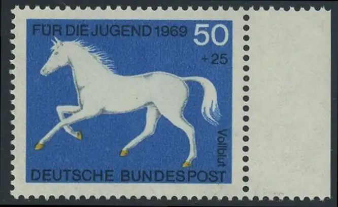 BUND 1969 Michel-Nummer 0581 postfrisch EINZELMARKE RAND rechts