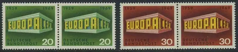 BUND 1969 Michel-Nummer 0583-0584 postfrisch SATZ(2) horiz.PAARE