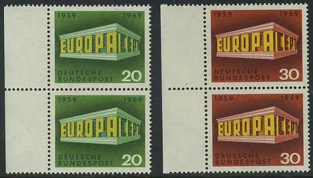BUND 1969 Michel-Nummer 0583-0584 postfrisch SATZ(2) vert.PAARE RÄNDER links
