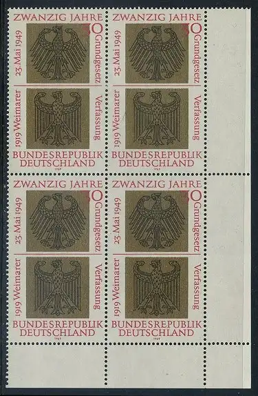 BUND 1969 Michel-Nummer 0585 postfrisch BLOCK ECKRAND unten rechts