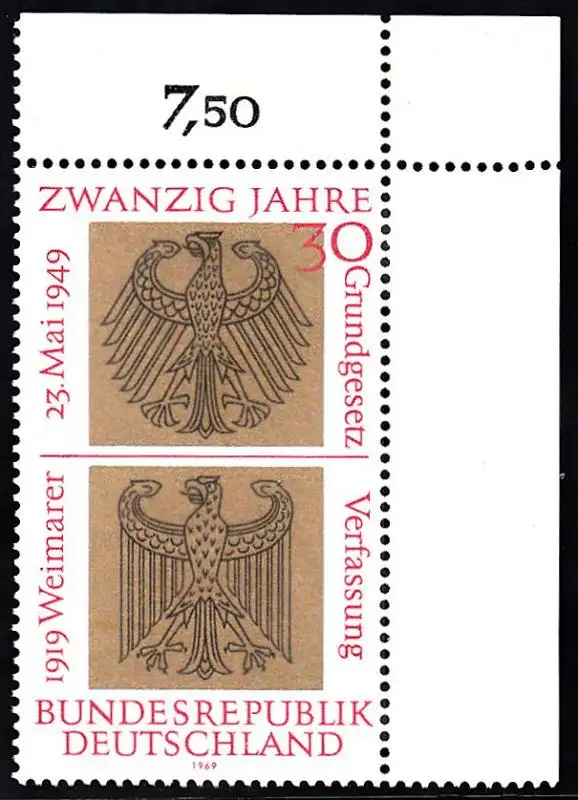 BUND 1969 Michel-Nummer 0585 postfrisch EINZELMARKE ECKRAND oben rechts