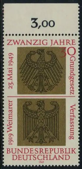BUND 1969 Michel-Nummer 0585 postfrisch EINZELMARKE RAND oben (a)