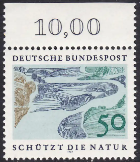 BUND 1969 Michel-Nummer 0594 postfrisch EINZELMARKE RAND oben (a1)