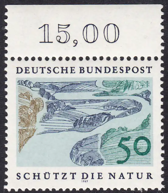 BUND 1969 Michel-Nummer 0594 postfrisch EINZELMARKE RAND oben (a2)