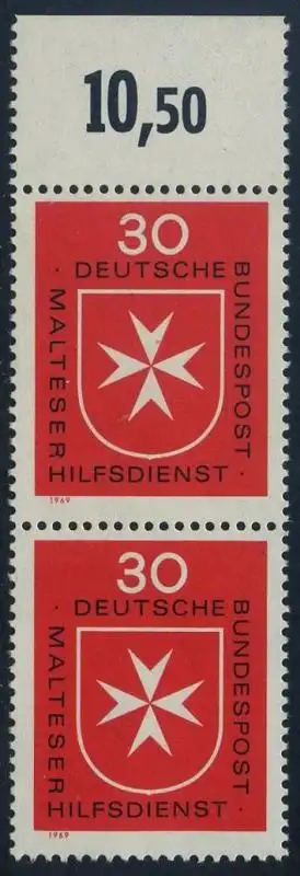 BUND 1969 Michel-Nummer 0600 postfrisch vert.PAAR RAND oben