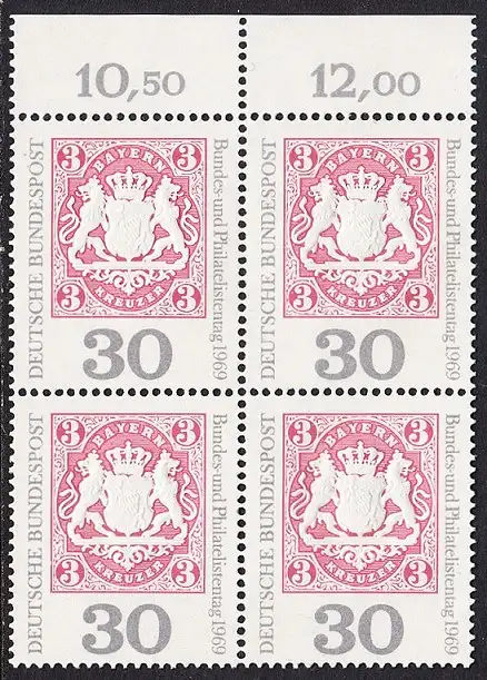 BUND 1969 Michel-Nummer 0601 postfrisch BLOCK RÄNDER oben (a)