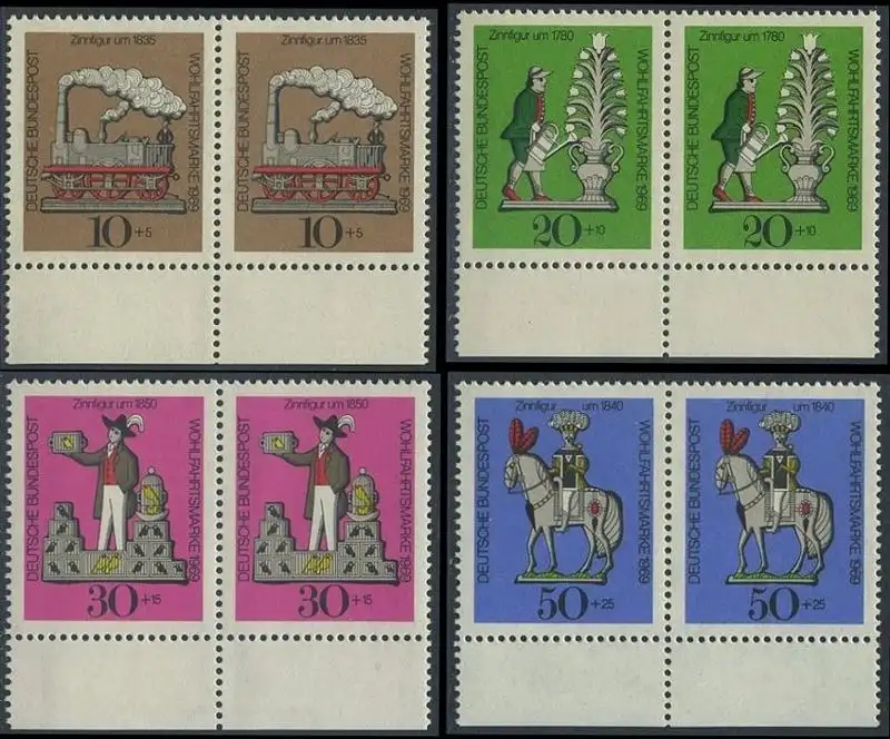 BUND 1969 Michel-Nummer 0604-0607 postfrisch SATZ(4) horiz.PAARE RÄNDER unten