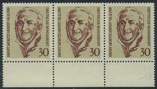 BUND 1969 Michel-Nummer 0611 postfrisch horiz.STRIP(3) RAND unten