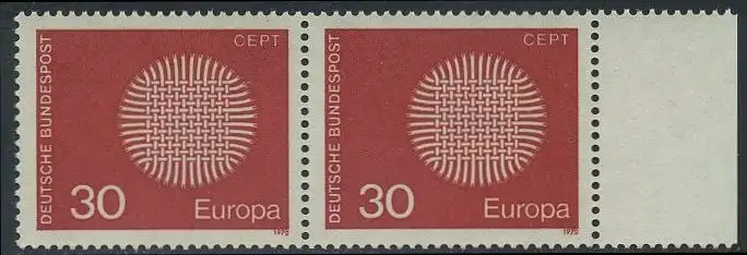 BUND 1970 Michel-Nummer 0621 postfrisch horiz.PAAR RAND rechts