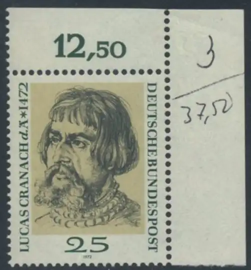 BUND 1972 Michel-Nummer 0718 postfrisch EINZELMARKE ECKRAND oben rechts