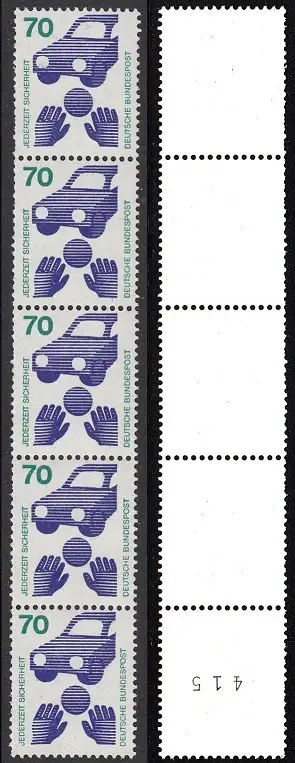 BUND 1973 Michel-Nummer 0773 postfrisch vert.STRIP(5) m/ rücks.Rollennummer 415