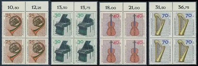 BUND 1973 Michel-Nummer 0782-0785 postfrisch SATZ(4) BLÖCKE RÄNDER oben