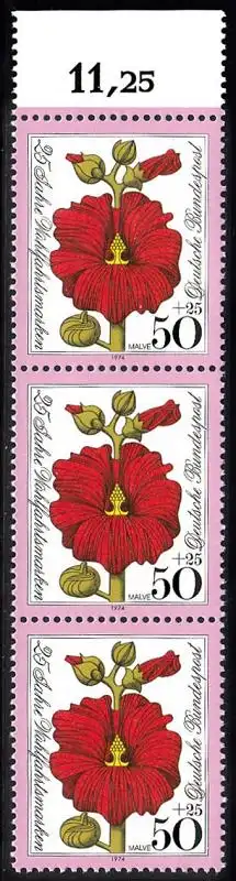 BUND 1974 Michel-Nummer 0820 postfrisch vert.STRIP(3) RAND oben