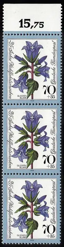 BUND 1974 Michel-Nummer 0821 postfrisch vert.STRIP(3) RAND oben