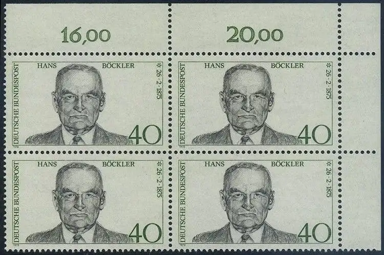 BUND 1975 Michel-Nummer 0832 postfrisch BLOCK ECKRAND oben rechts (a)
