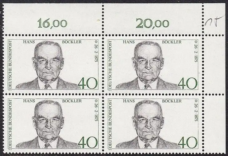 BUND 1975 Michel-Nummer 0832 postfrisch BLOCK ECKRAND oben rechts (b)