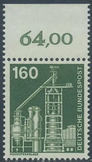 BUND 1975 Michel-Nummer 0857 postfrisch EINZELMARKE RAND oben