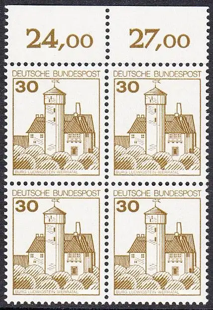 BUND 1977 Michel-Nummer 0914 postfrisch BLOCK RÄNDER oben