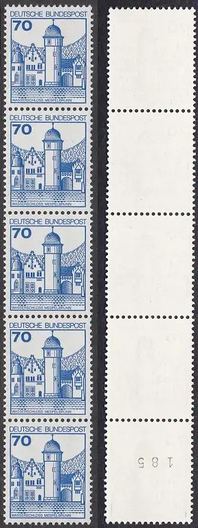 BUND 1977 Michel-Nummer 0918 postfrisch vert.STRIP(5) m/ rücks.Rollennummer 185