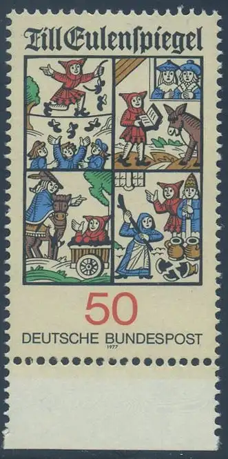 BUND 1977 Michel-Nummer 0922 postfrisch EINZELMARKE RAND unten