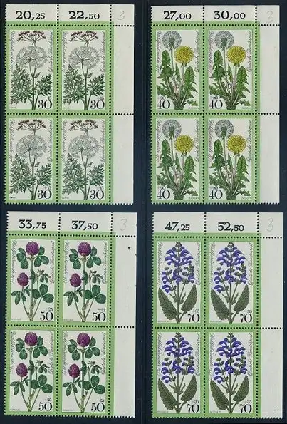 BUND 1977 Michel-Nummer 0949-0952 postfrisch SATZ(4) BLÖCKE ECKRAND oben rechts