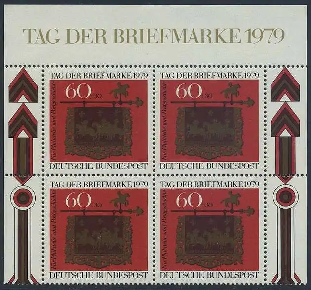 BUND 1979 Michel-Nummer 1023 postfrisch BLOCK RÄNDER oben