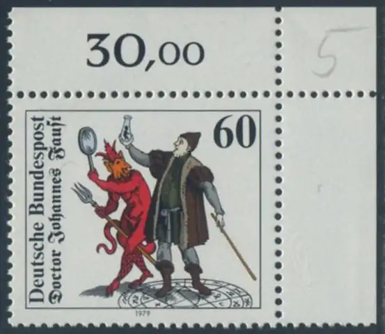 BUND 1979 Michel-Nummer 1030 postfrisch EINZELMARKE ECKRAND oben rechts (b)