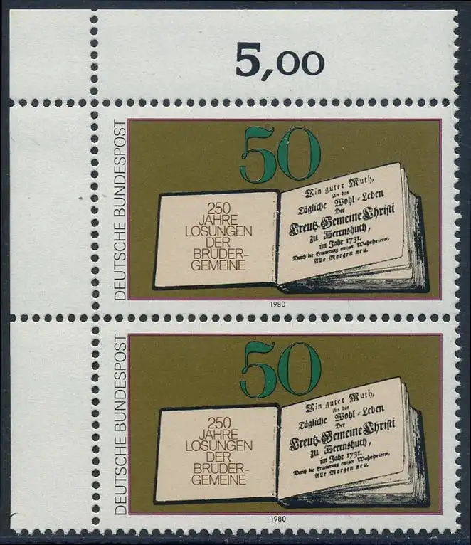 BUND 1980 Michel-Nummer 1054 postfrisch vert.PAAR ECKRAND oben links