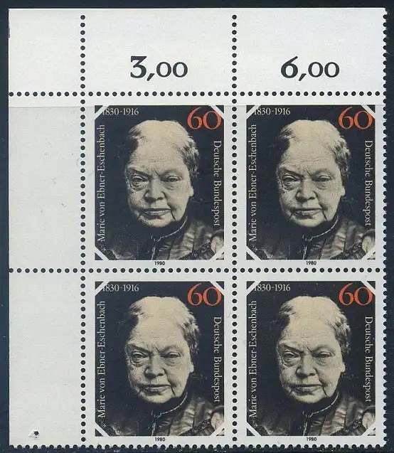 BUND 1980 Michel-Nummer 1057 postfrisch BLOCK ECKRAND oben links