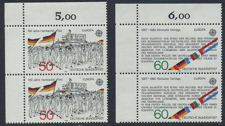 BUND 1982 Michel-Nummer 1130-1131 postfrisch SATZ(2) EINZELMARKEN vert.PAARE oben links