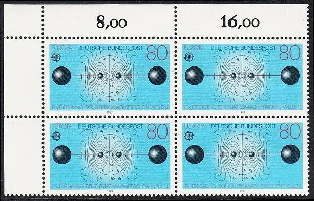 - Europa: Große Werke des menschlichen Geistes: Schwingungskreis (Hertzscher Dipol), elektrische Feldlinien; Entdeckung der elektromagnetischen Wellen durch Heinrich Hertz (1857-1894), Physiker