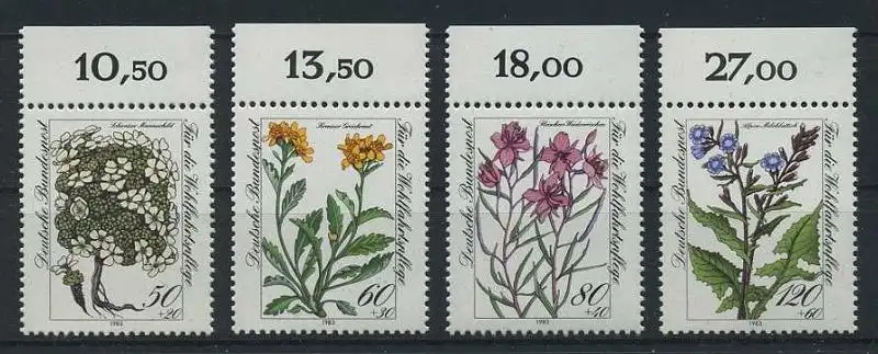 BUND 1983 Michel-Nummer 1188-1191 postfrisch SATZ(4) EINZELMARKEN RÄNDER oben (a)